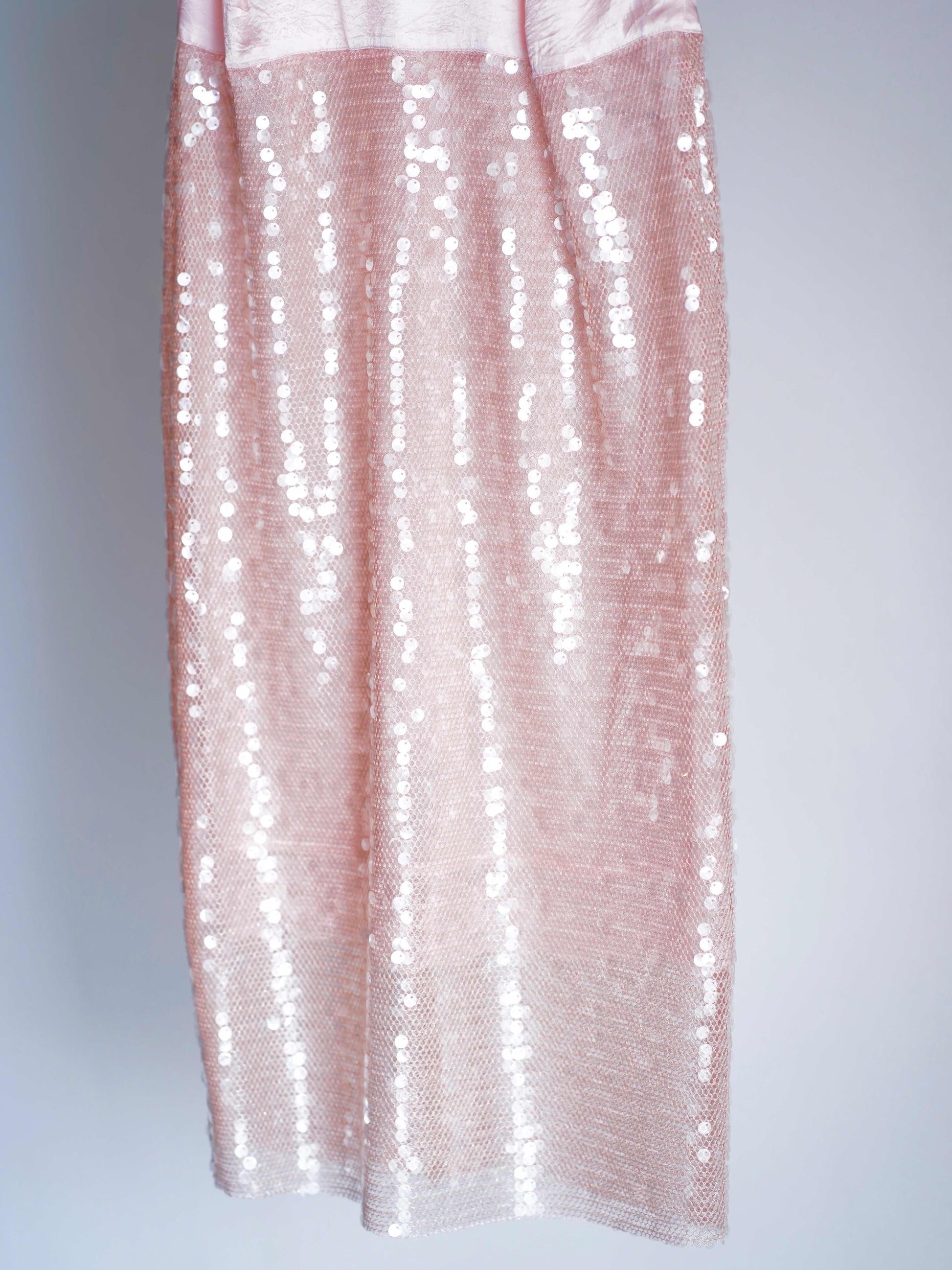 リバーシブル仕様になっており、裏側はサテン地とレースがヴィンテージのような雰囲気に。