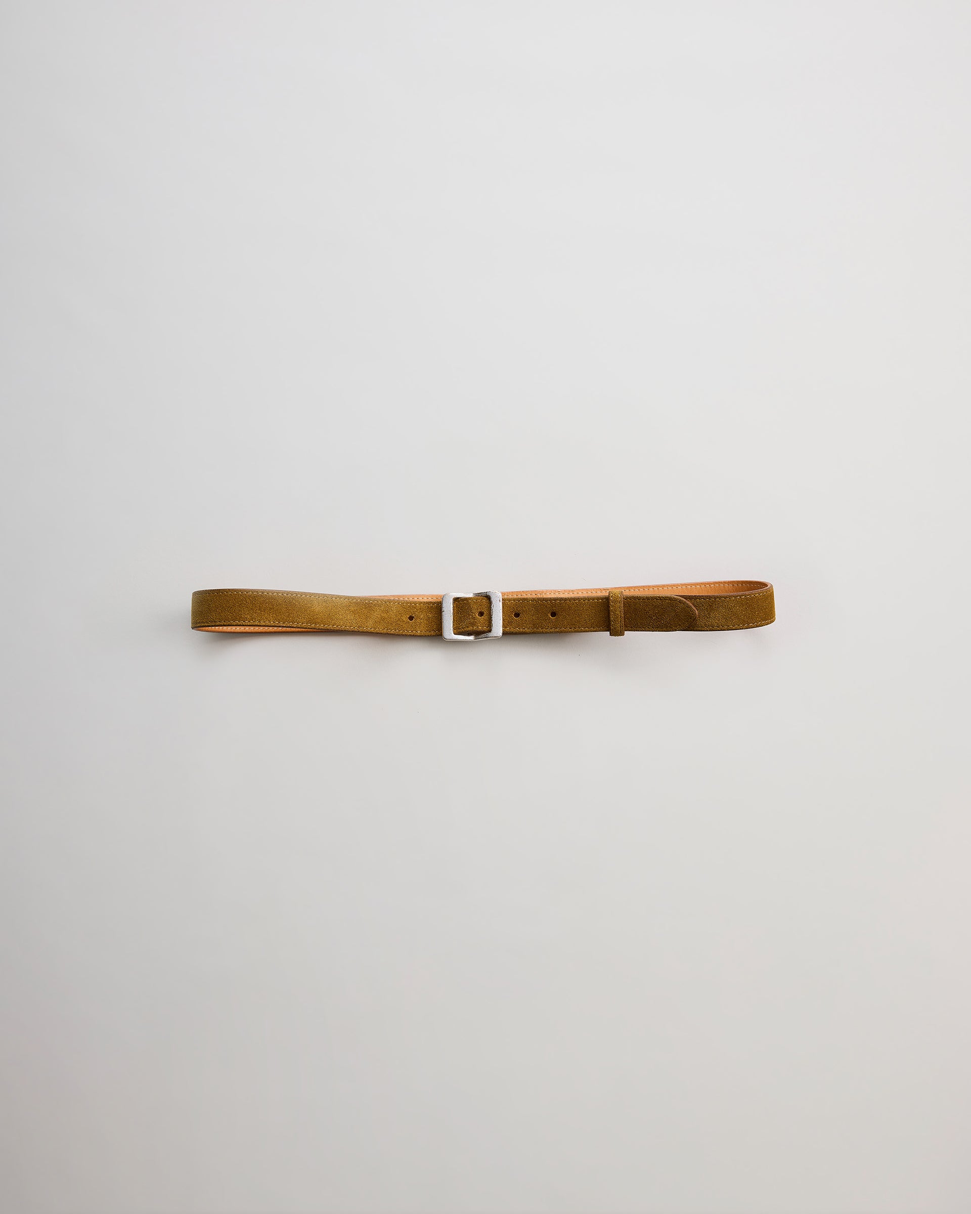 ⾼品質スエードレザーとイタリア伝統バケッタレザーで製作したNNコンビレザーベルト。