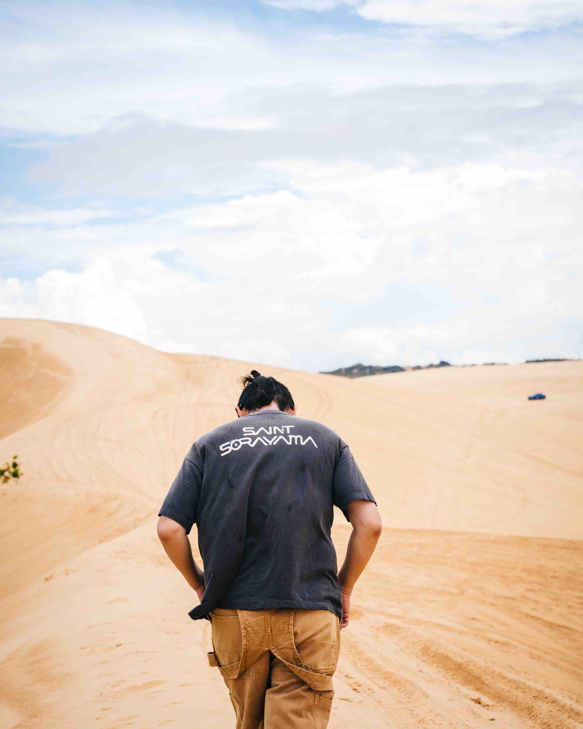 空山氏が描く近未来的なアートワークと、©SAINT Mxxxxxxのシグネチャーでもあるヴィンテージ加工が交差することで、アートとファッションの垣根を越えたプロダクトが誕生。