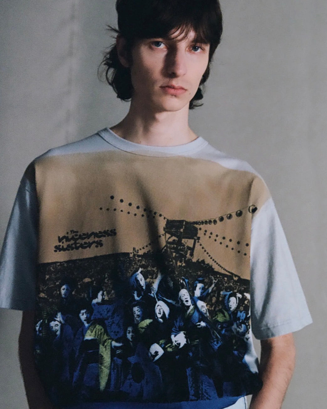 柄は1990年代の⾳楽カルチャーを象徴するジャケットデザインからインスピレーションを得て、コラージュやハンドプリントによる視覚的インパクトとエネルギーを⽇本の"夏祭り"に置き換えサイケでスピリチュアルな独⾃の世界観を表現。