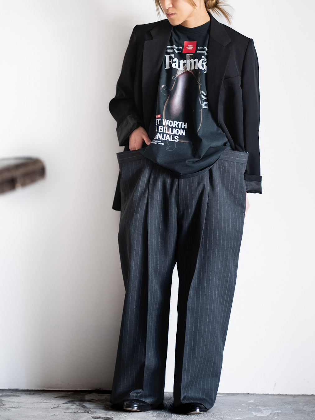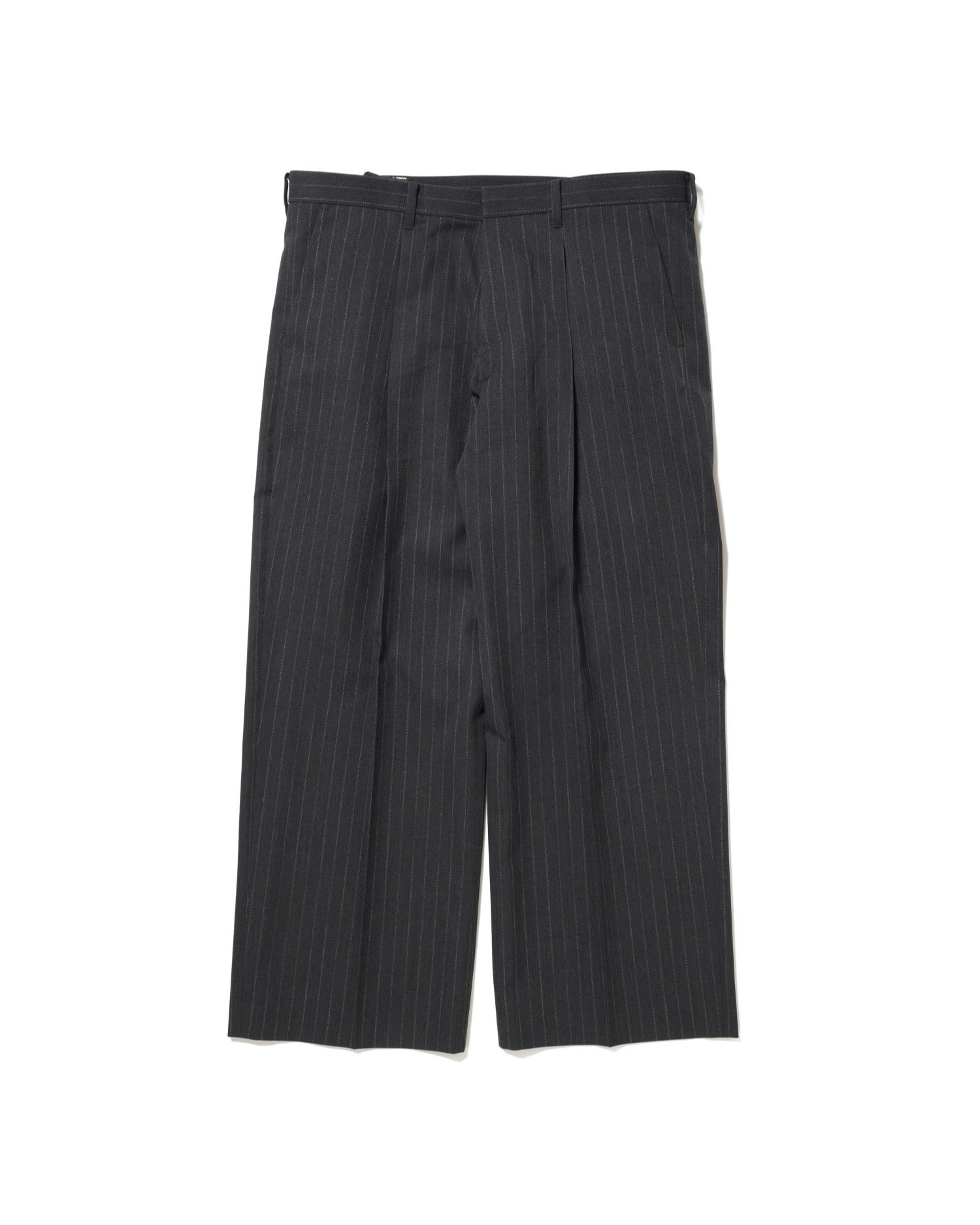ウエストが浮いて見える特殊構造を取り入れた、新型シルエットのスラックス。ベルトで折り畳めばノーマルにも、タックインすれば構造が際立ちます。あのバスケ選手のように、腰に手を突っ込む“あの感じ”が自然と再現できる、身体に馴染む一本です。