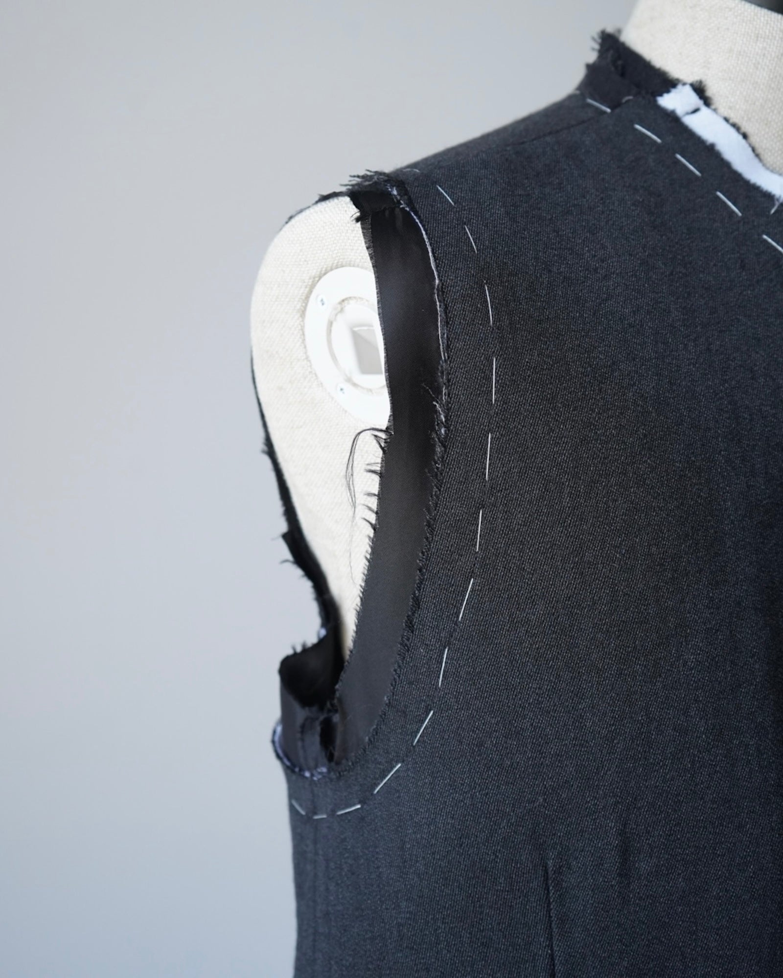 メゾンの「ワーク・イン・プログレス」アプローチを体現するノースリーブジャケット。