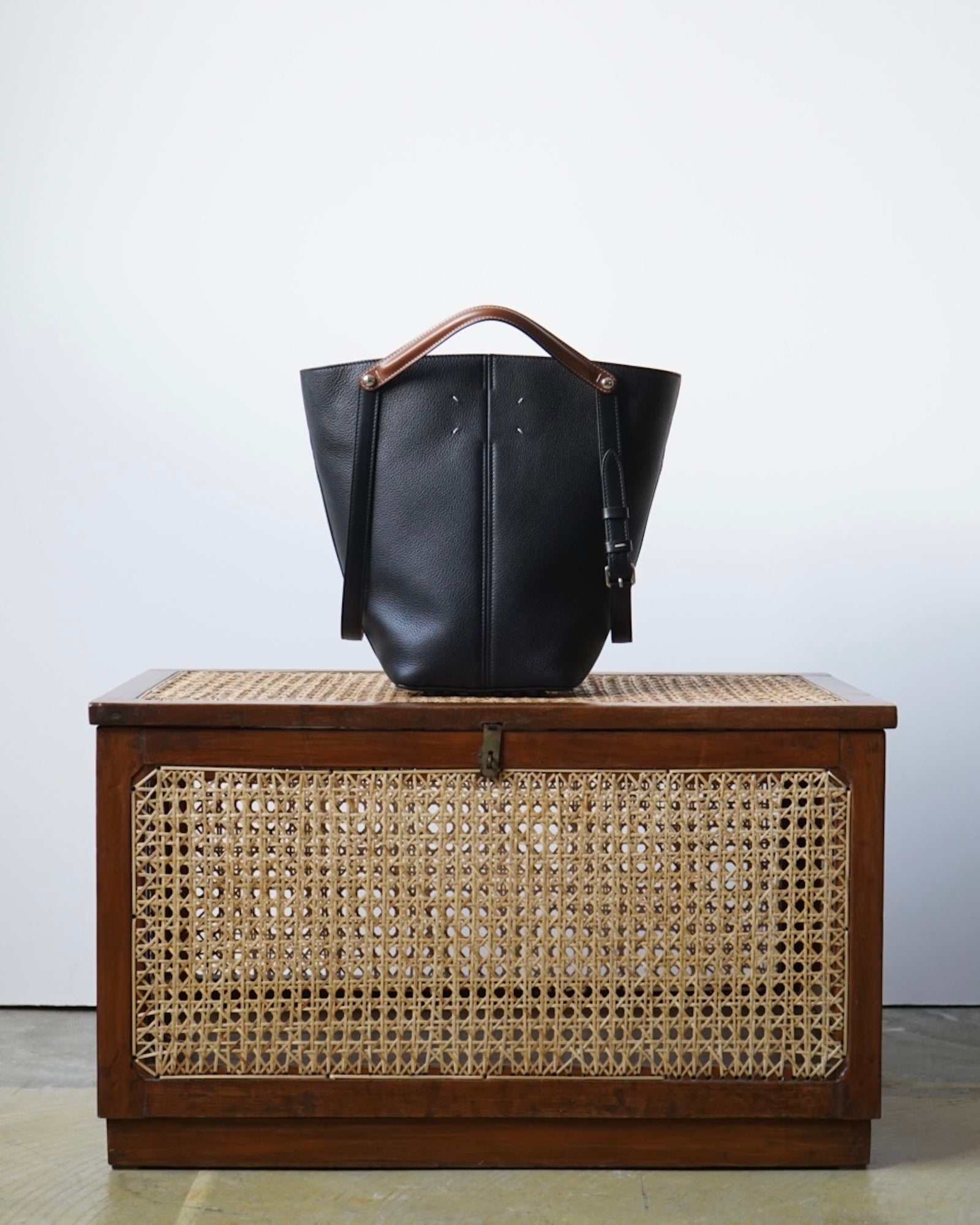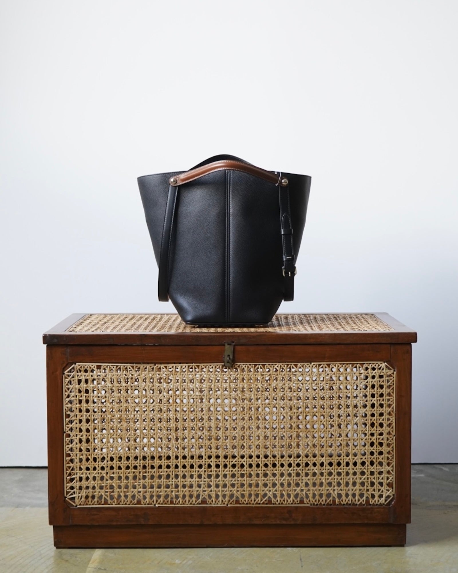 このミディアムサイズのハンドバッグは、クラシカルなレザーワークと洗練されたラインで、無意識なグラマラスさにジェスチャーを感じさせるデザインが融合しています。