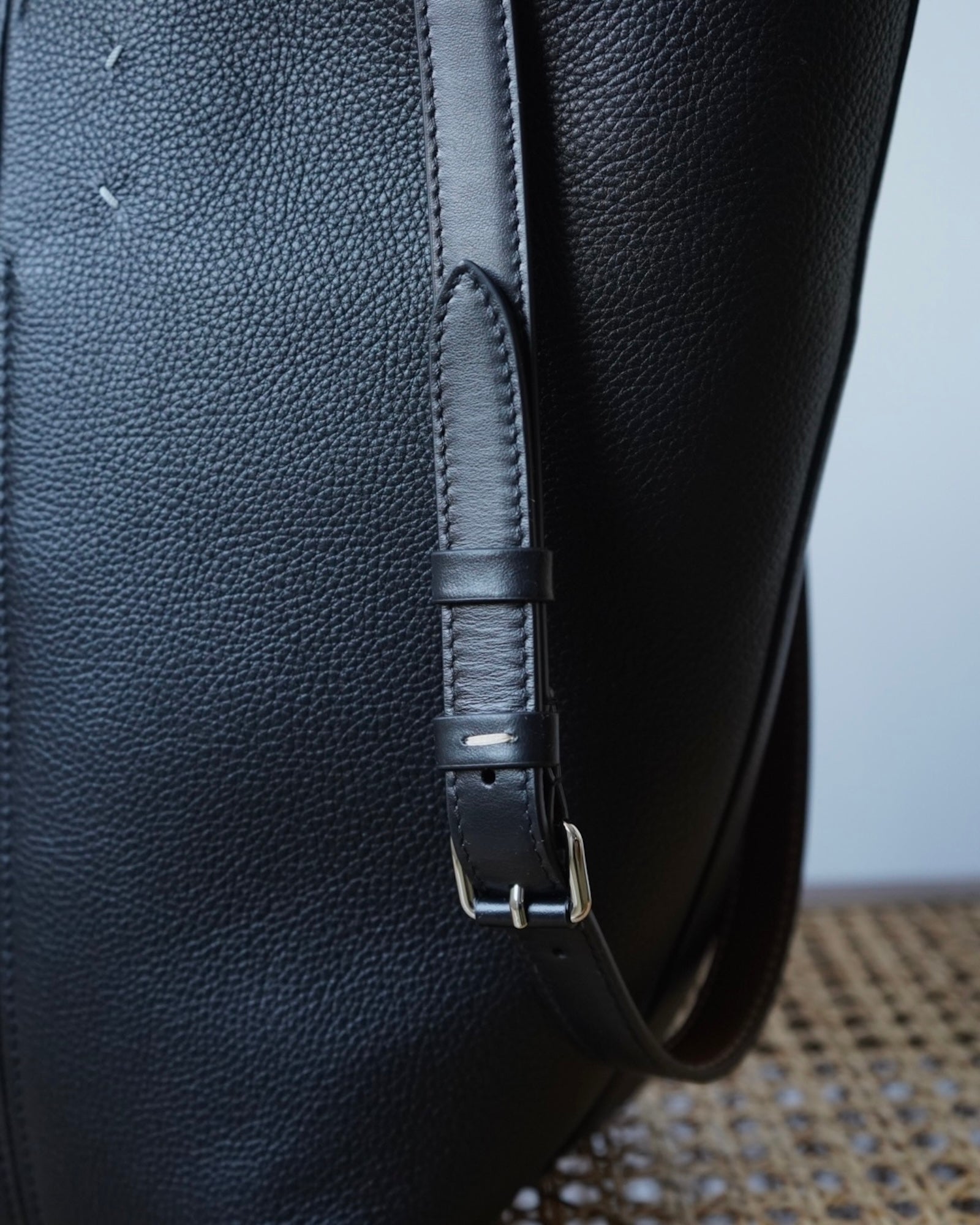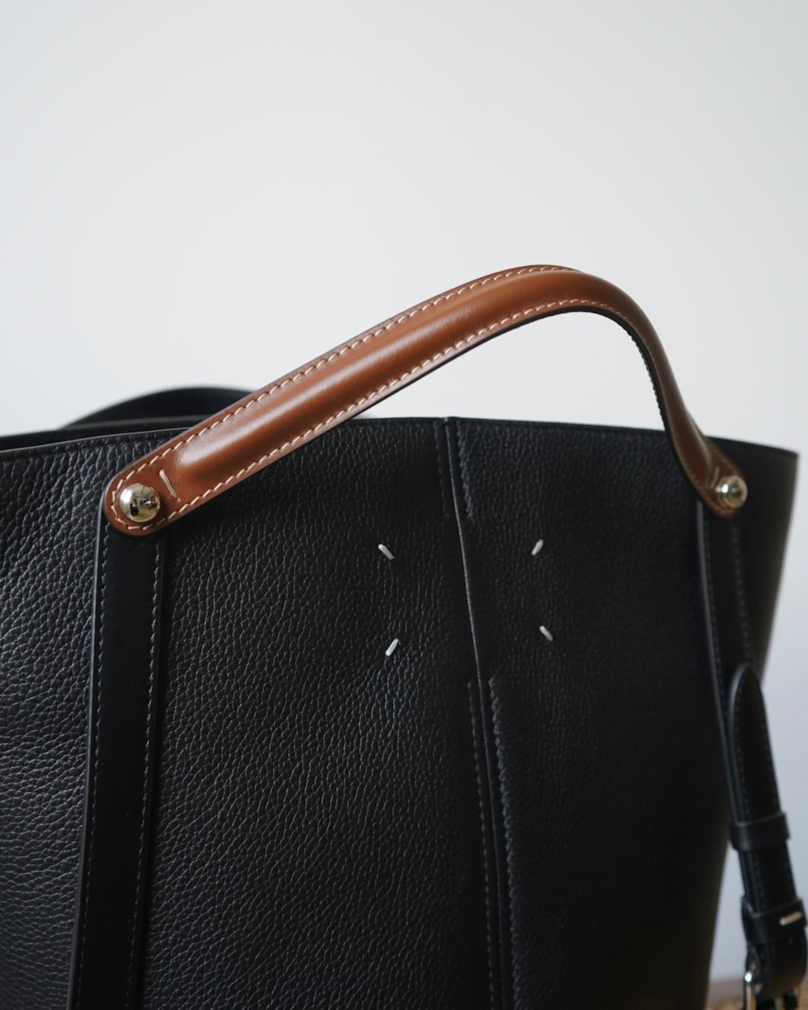 台形のシルエット、2通りに使えるコントラストカラーのストラップも特徴です。