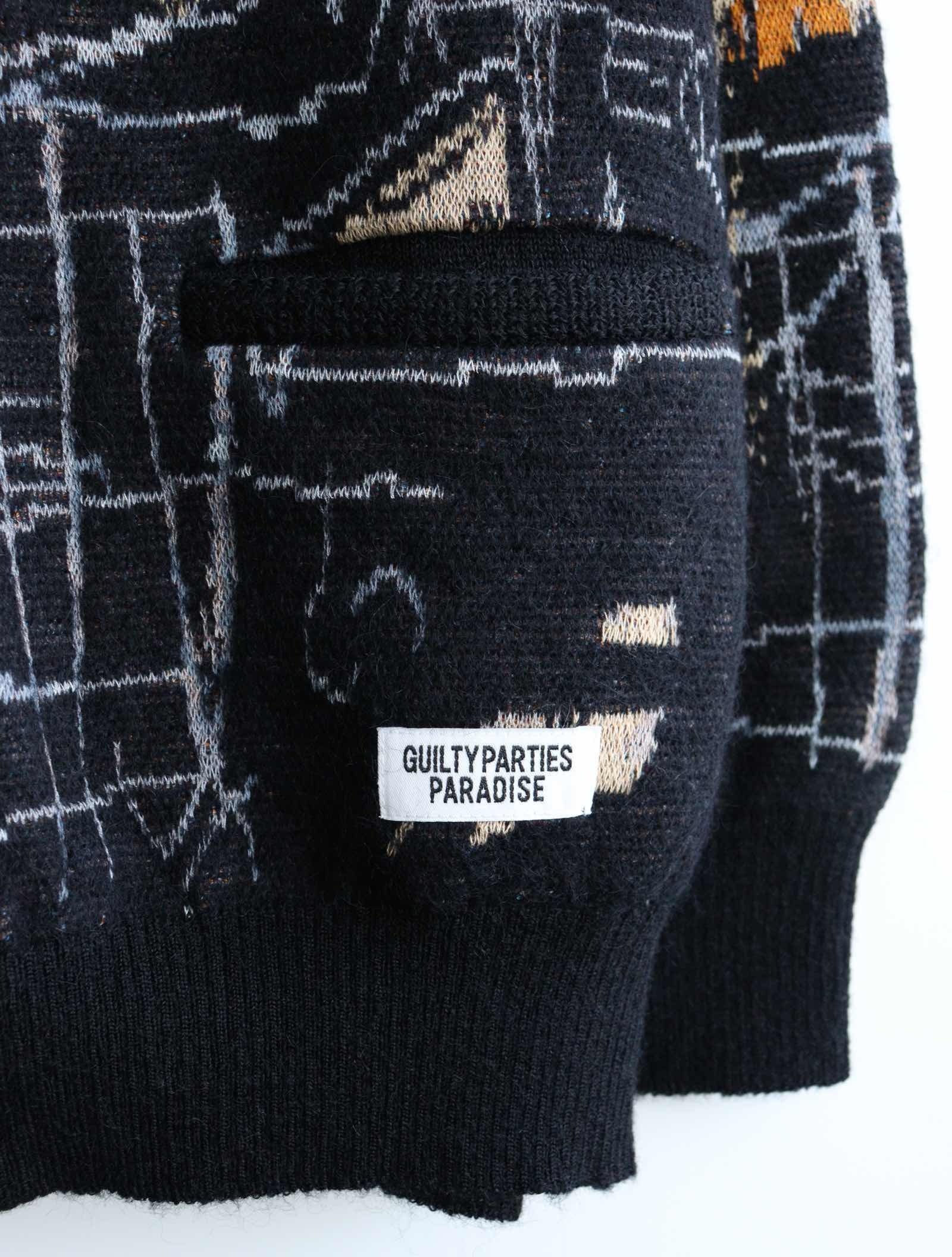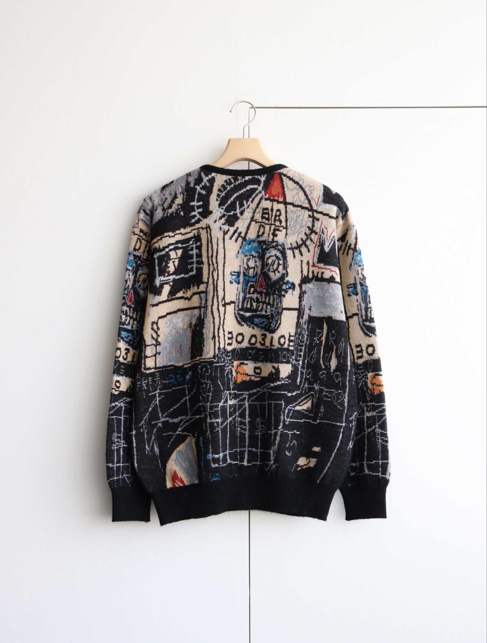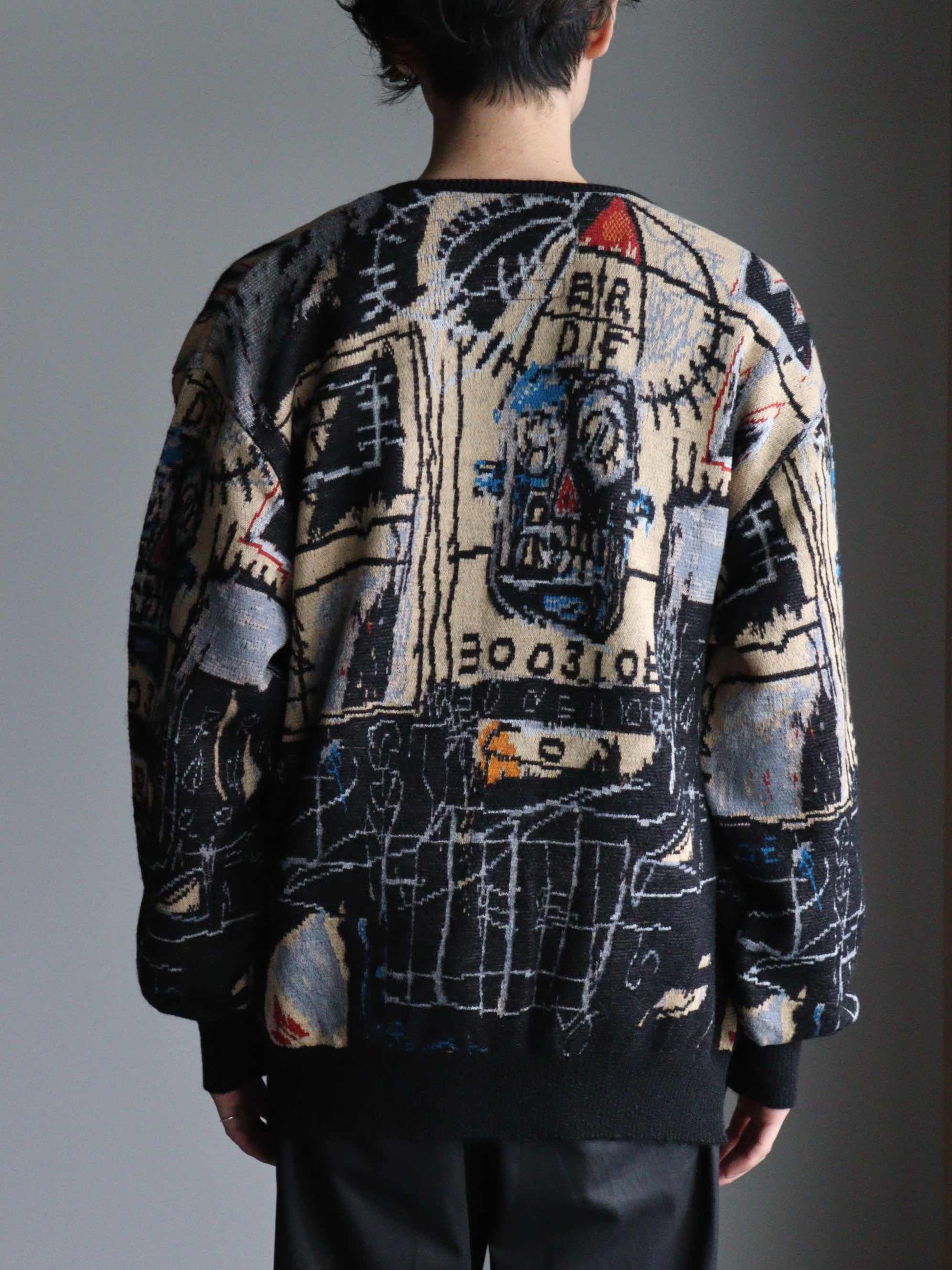 JEAN-MICHEAL BASQUIAT の作品を落とし込んだジャガードカーディガン。