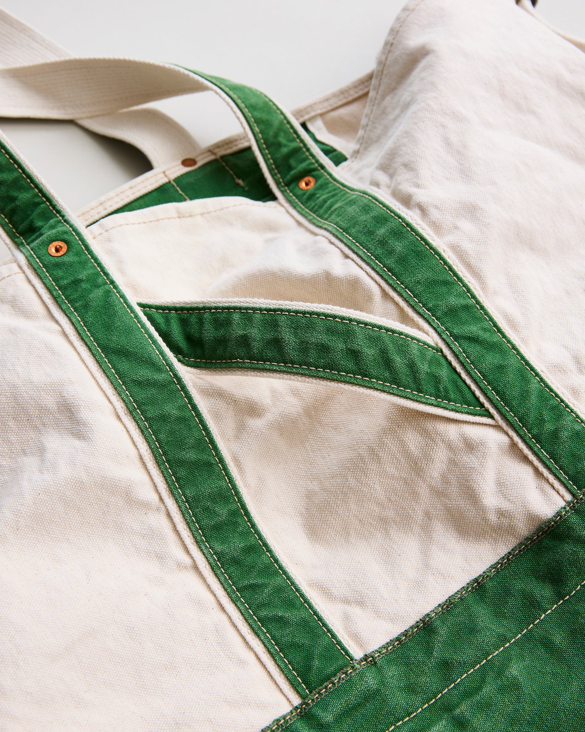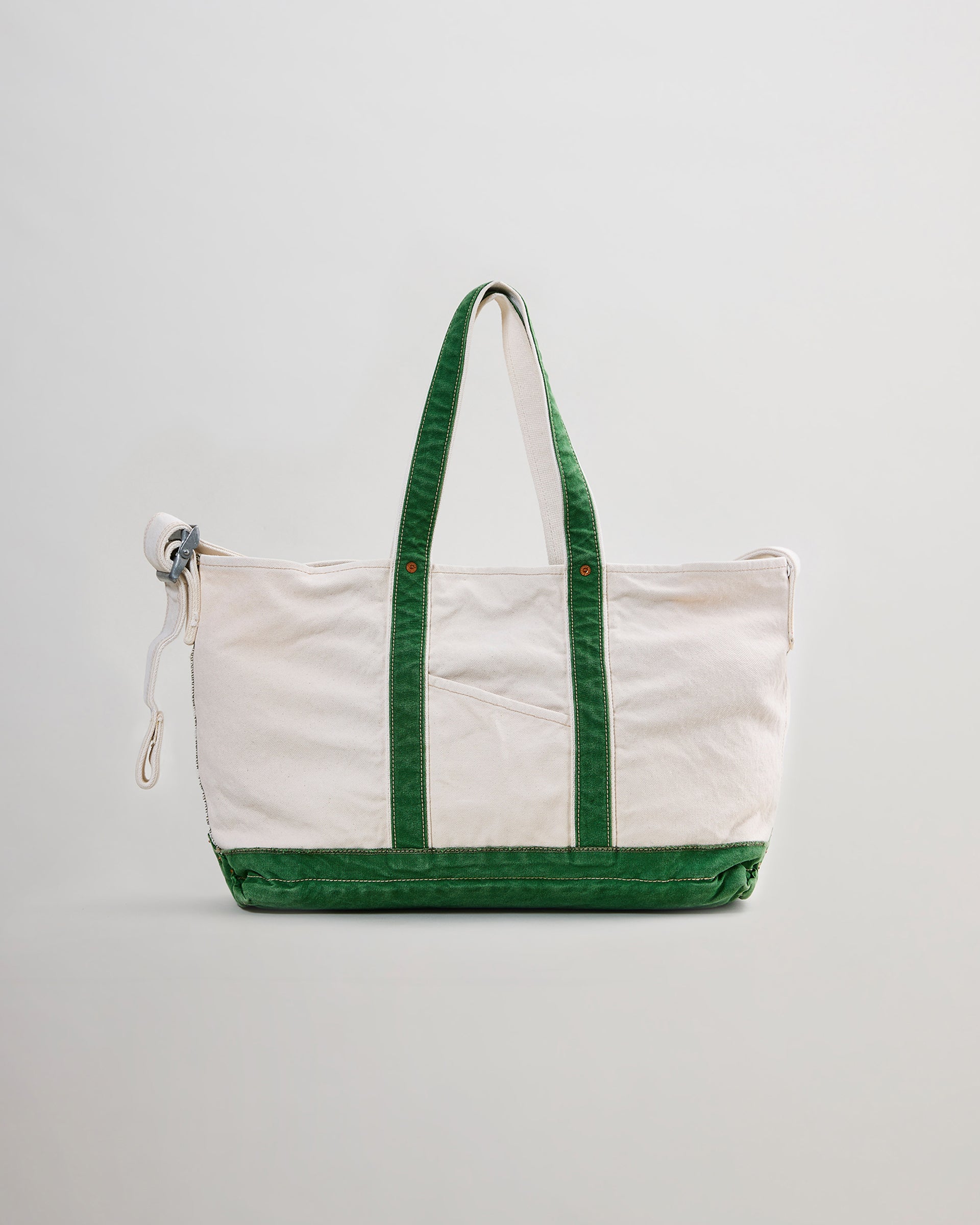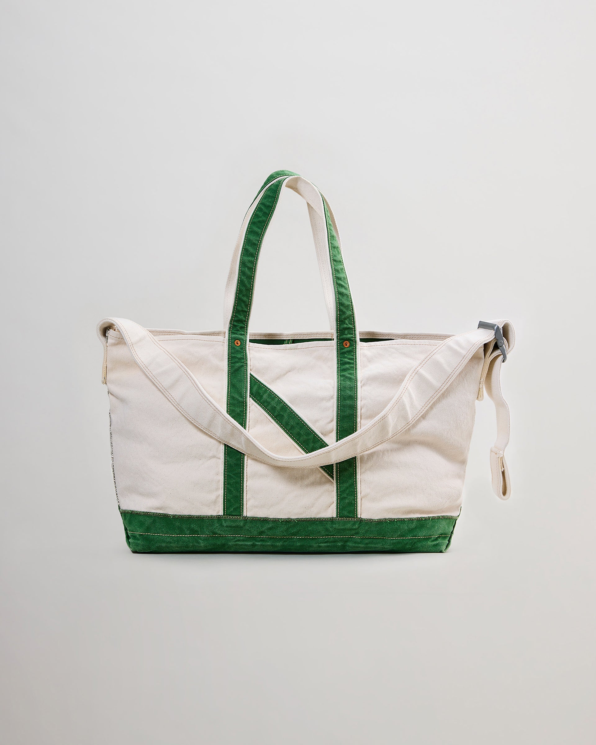 1920〜1950年代に登場した⽶国のツールバッグからインスピレーションを得てデザインしたショルダーストラップ付きトートバッグ。⽣地はシャトル織機で織り上げられた6号と10号帆布にワッシャー加⼯を施し、製品後にストーンウォッシュで仕上げてヴィンテージライクなアタリを演出しています。