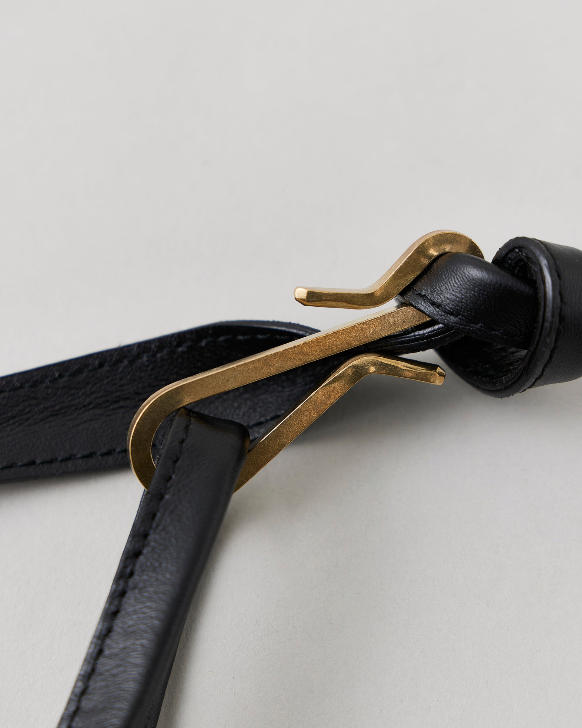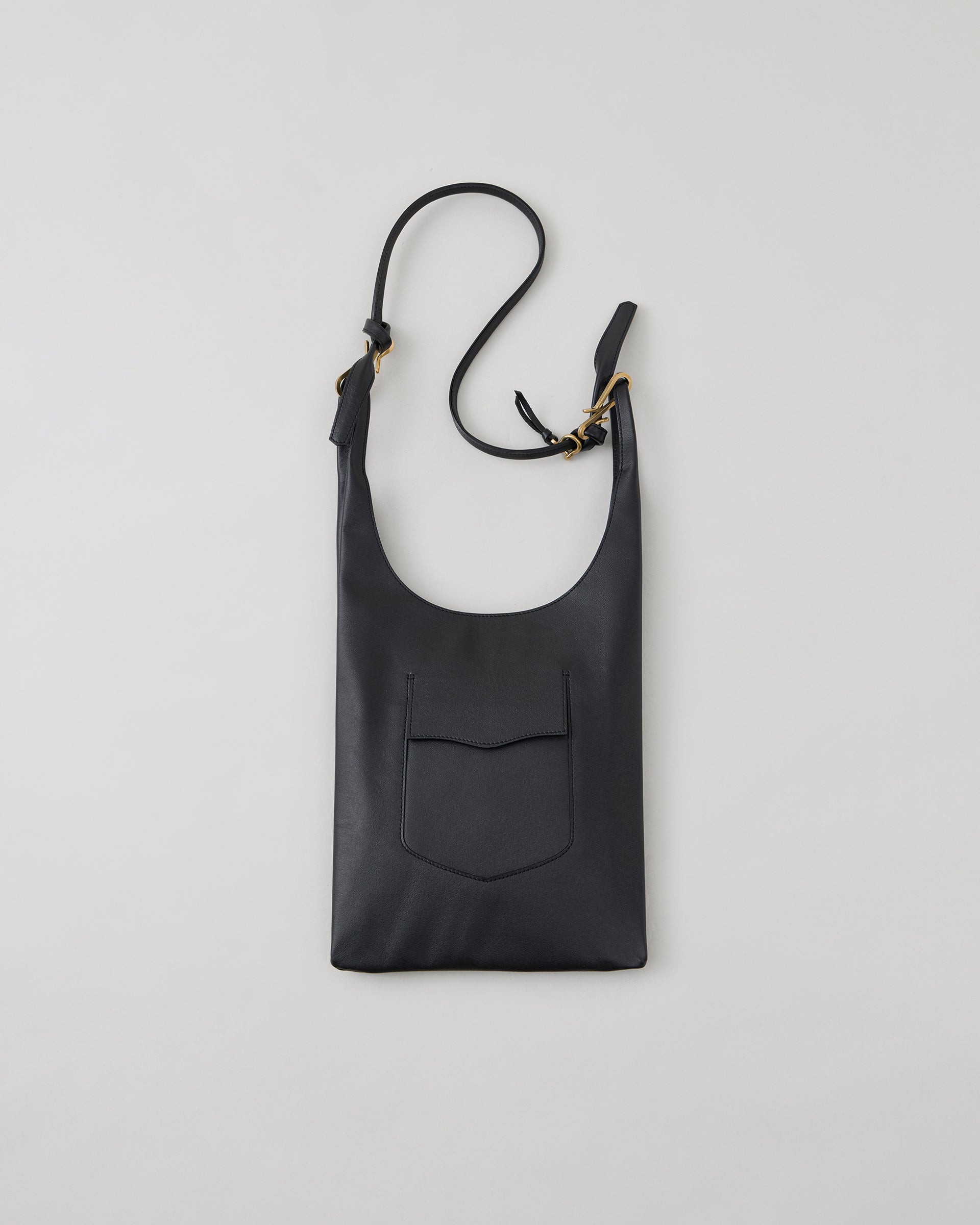 素材はUKラムレザーを使用し下地を茶芯、表面を黒の顔料で仕上げたことで銀面が割れた時に下地の茶色が表出し、ヴィンテージライクな表情へと変化していきます。