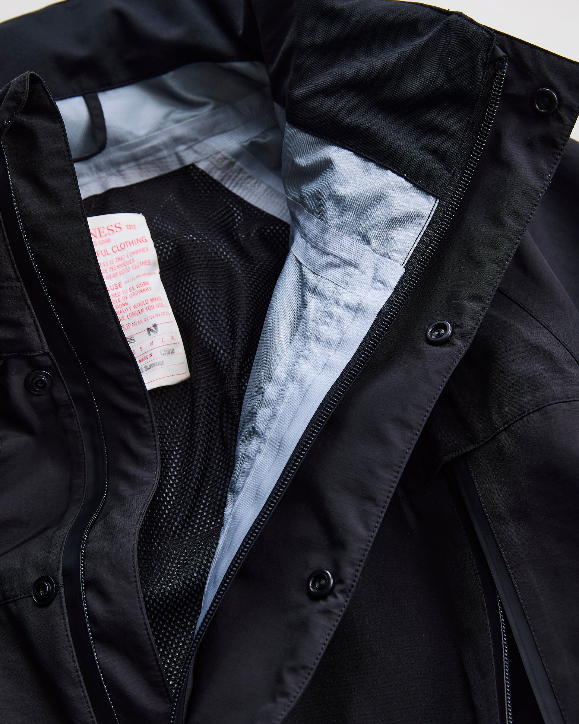 ⾼度な技術を要する製造⼯程のため対応可能な⼯場が限られており、⼤変希少なアイテムとなっています。軍事⽤に開発された機能性と、⺠⽣品としての洗練されたデザインが融合した⼀着です。