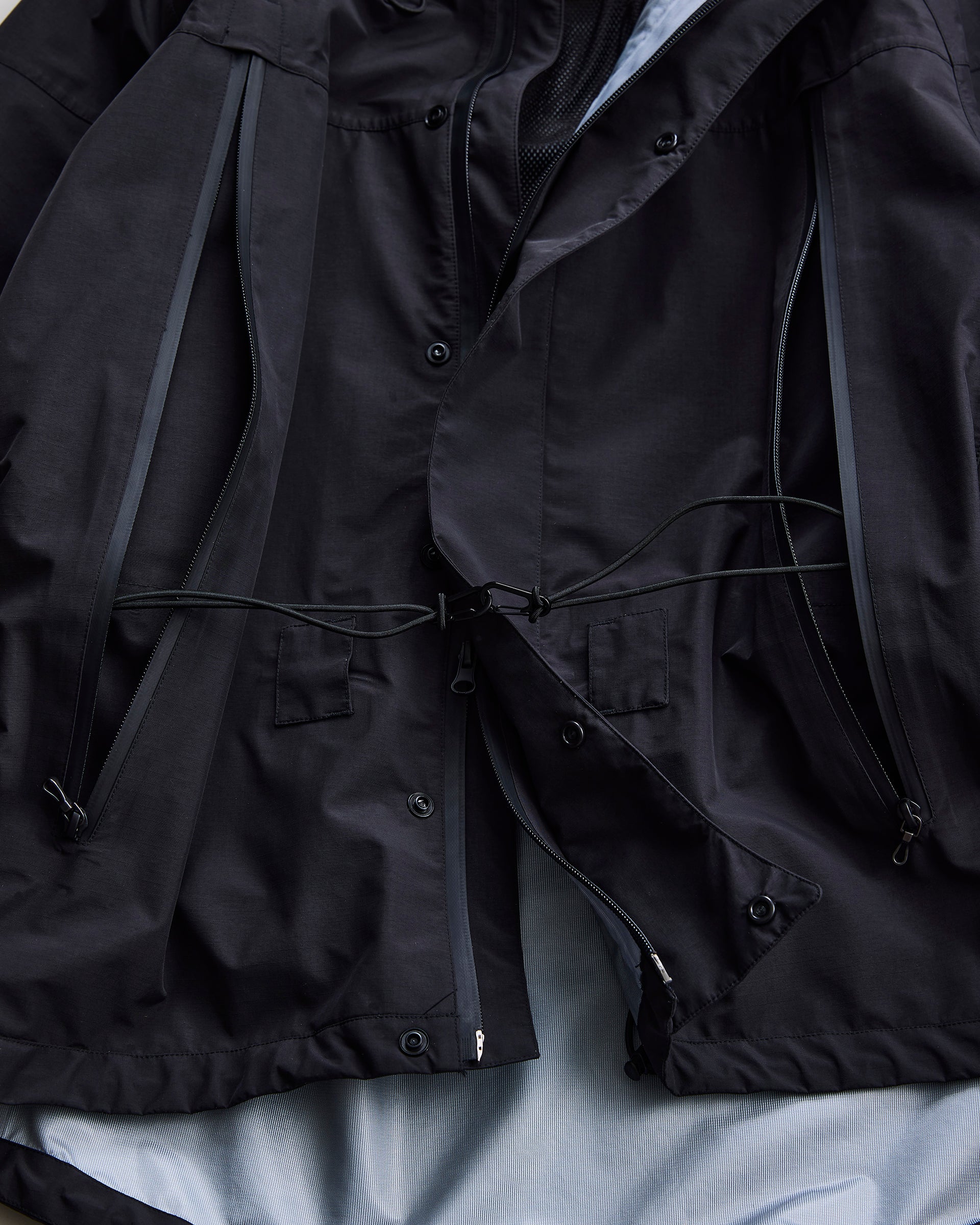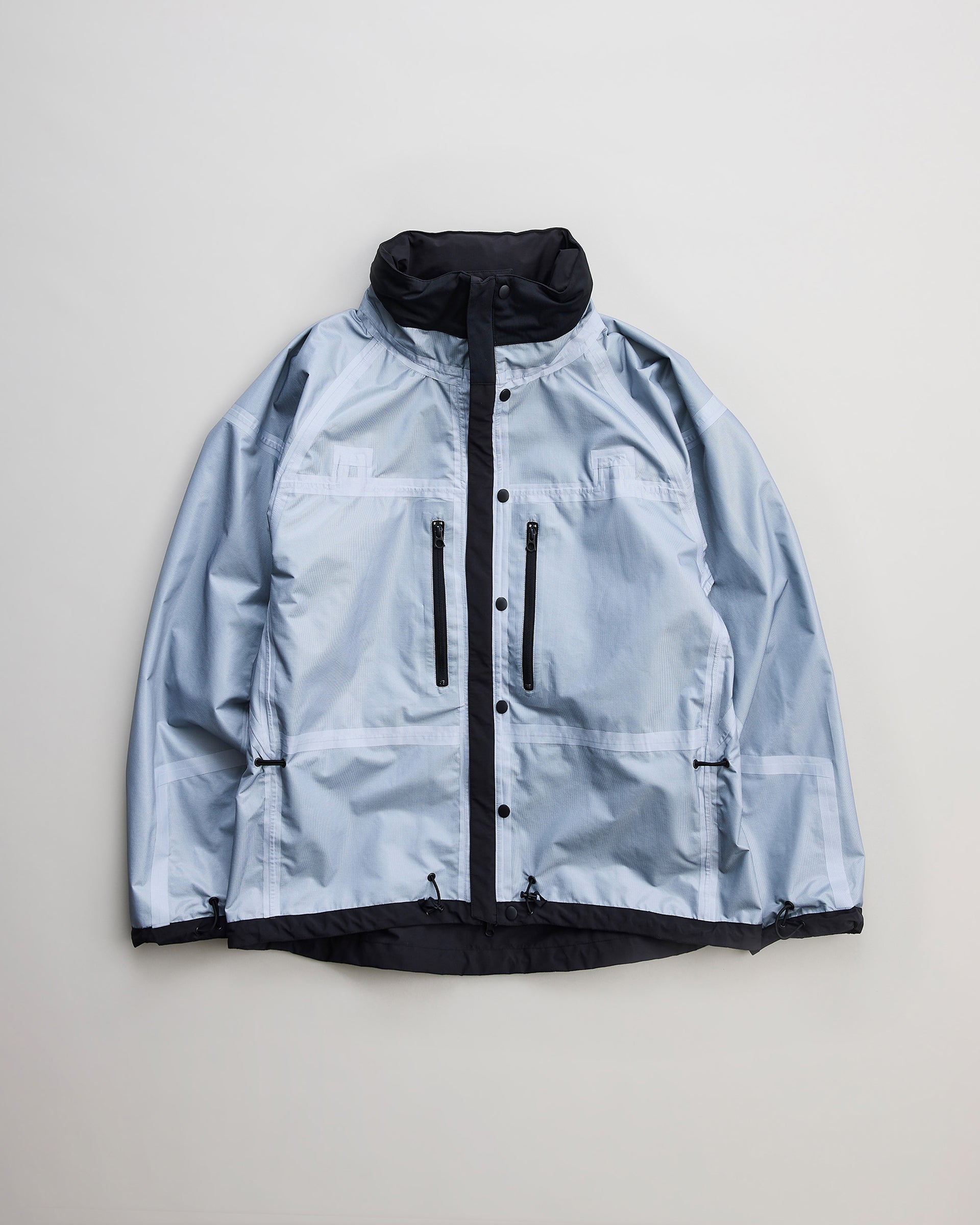 マーケットでごく少量⼊⼿したデッドストックのナイロンリップストップ素材で製作したタクティカルジャケット。
