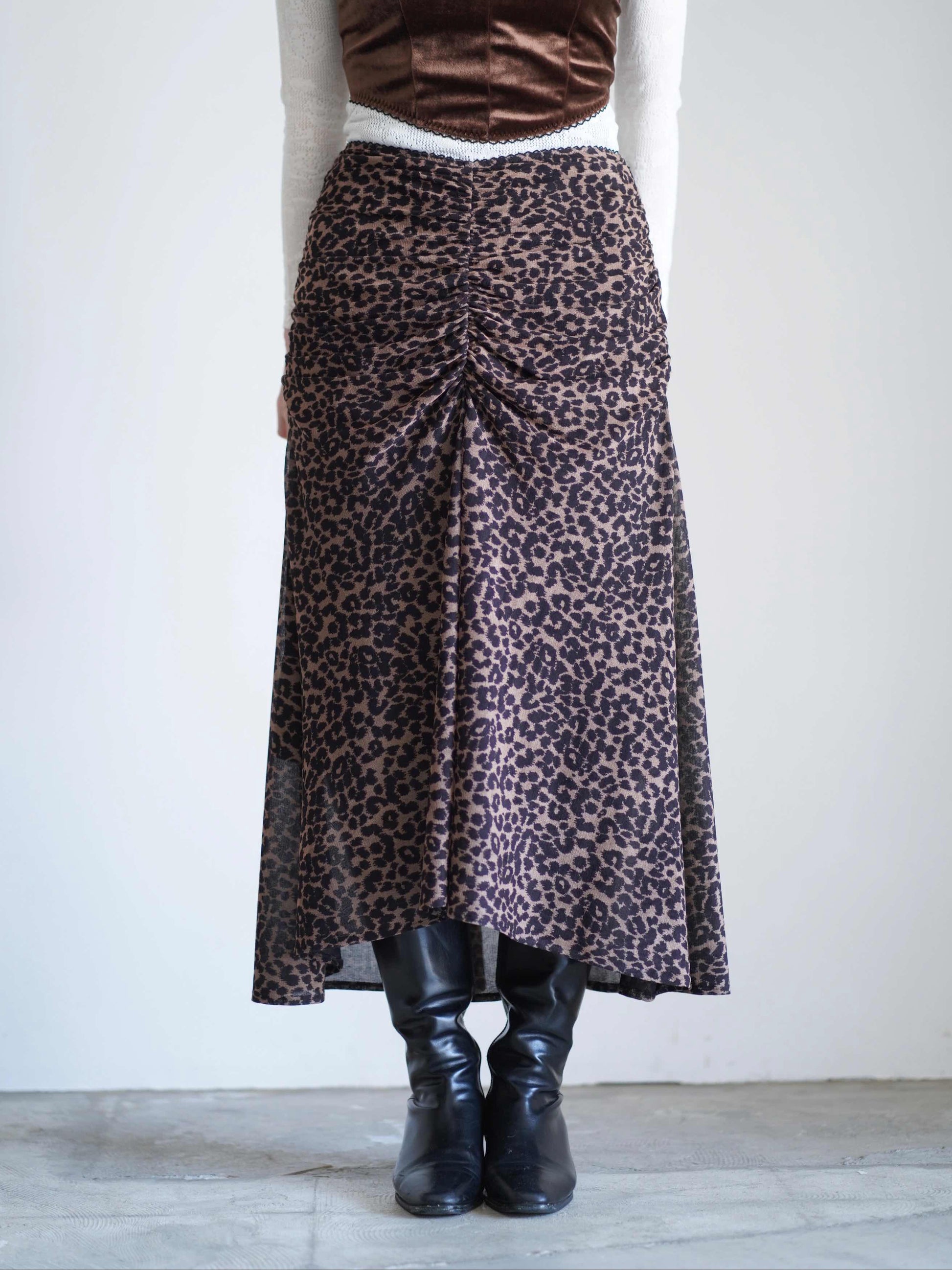 Printed velvet tulle gathered skirt