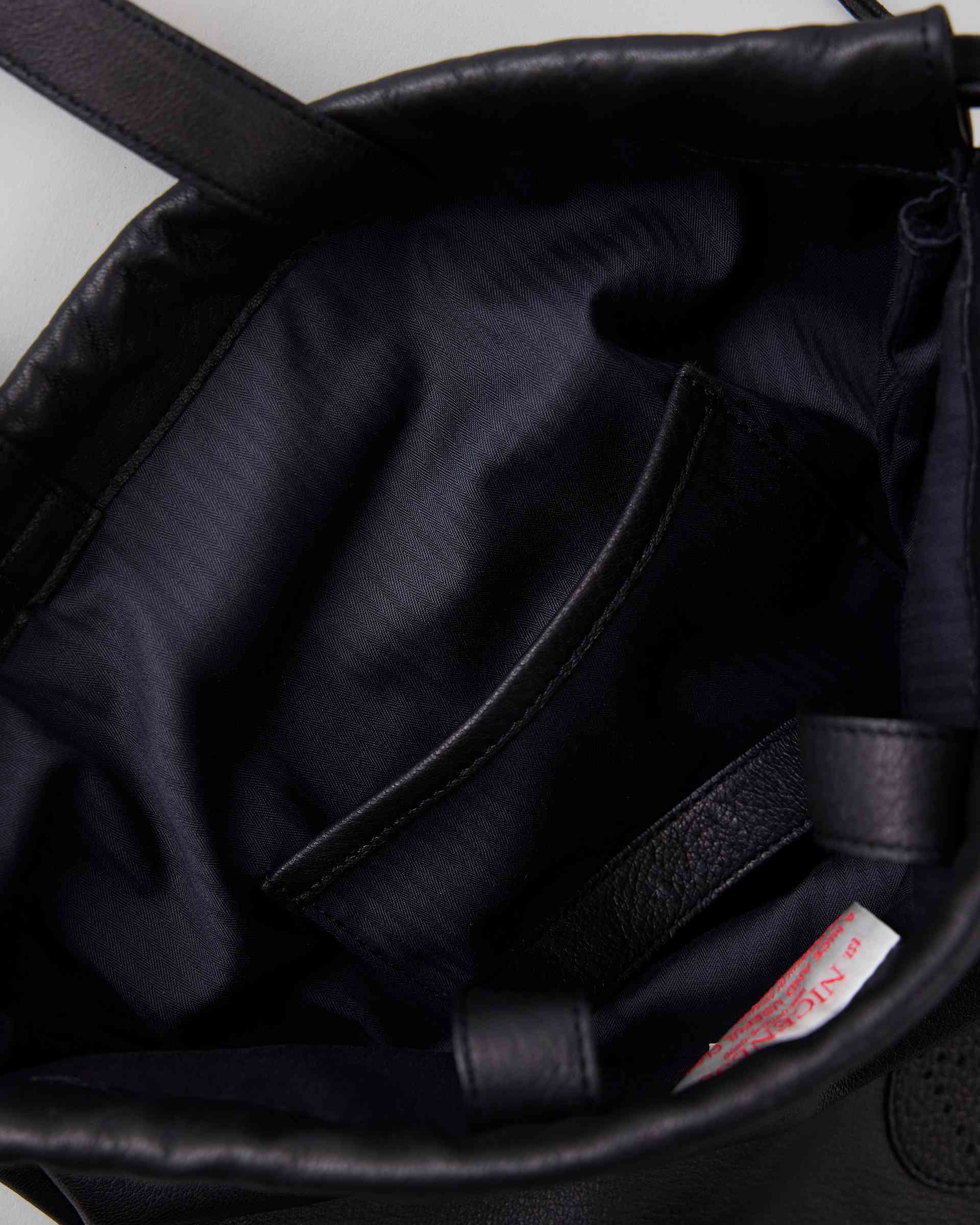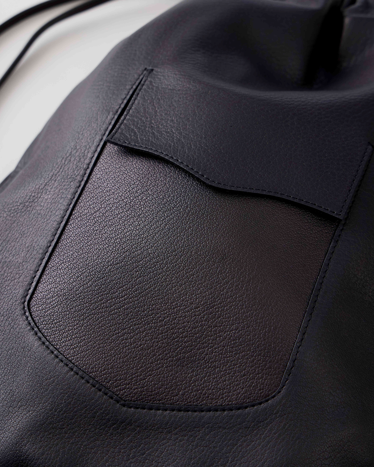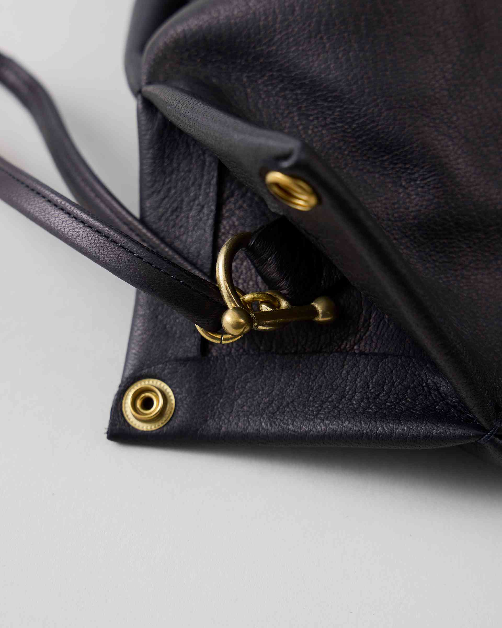 上質な鹿革から丁寧に作られた贅沢なナップサック。底の角に隠されたジョイントを外すことで入口の紐を絞ることができる2wayデザインです。