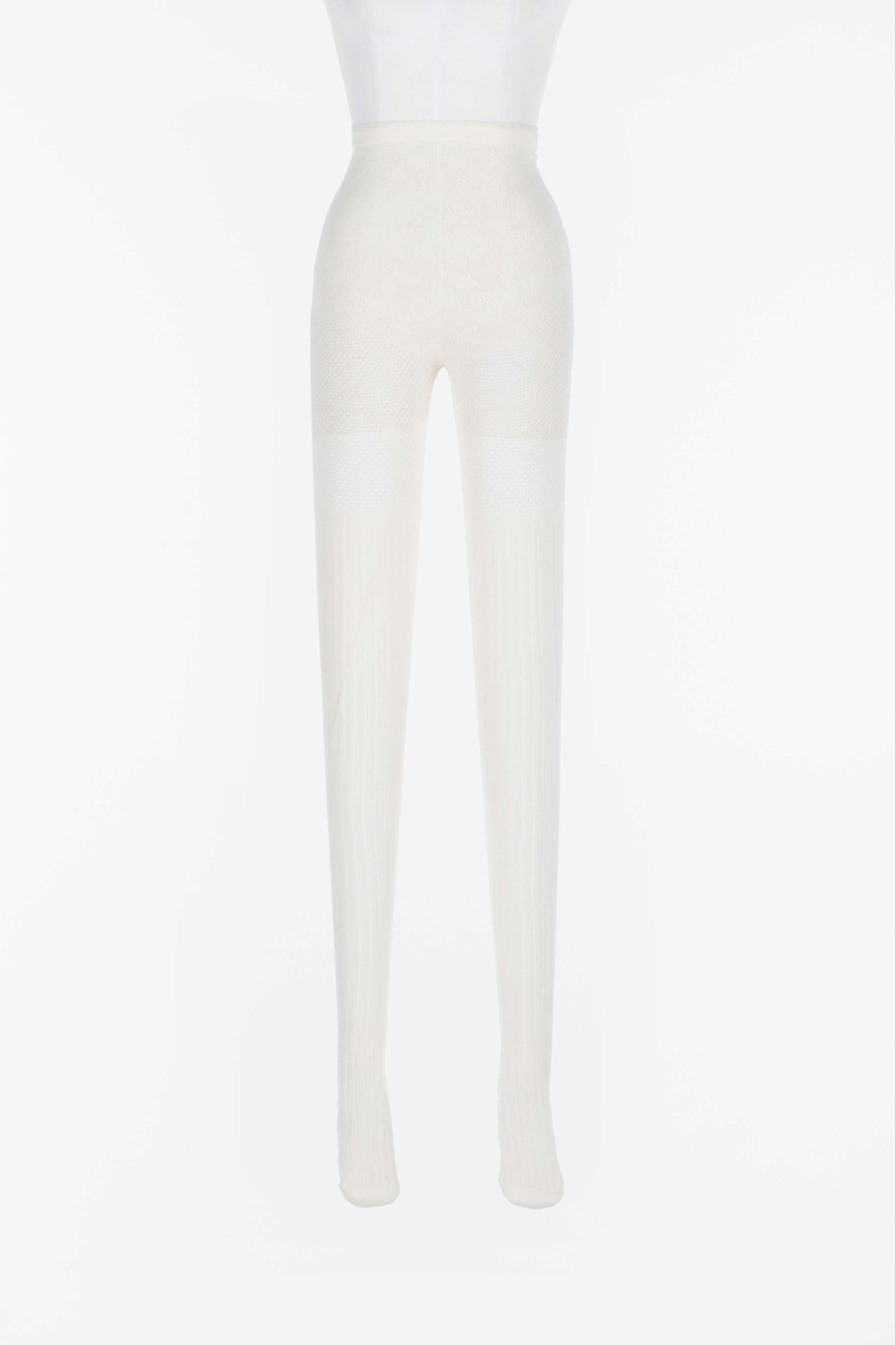 Rose pattern lace-knit knit tights