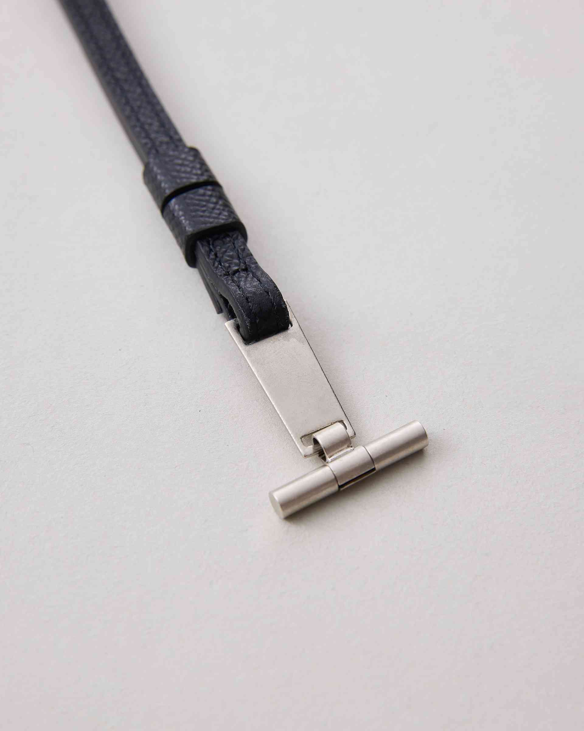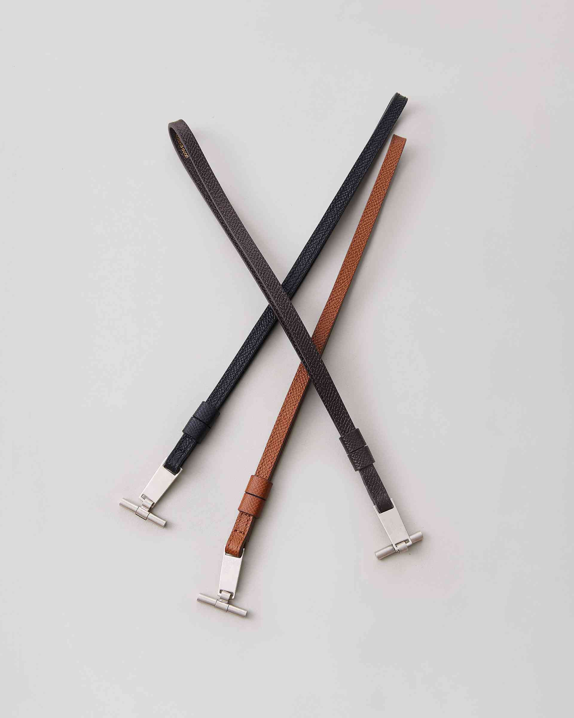 かいながらも高い強度を持つ銘革です。デザインはNNレザーアクセサリーと組み合わせられるよう、独自のTバー設計。このストラップを取り付けることでレザーアクセサリーとの相性も考慮されています。