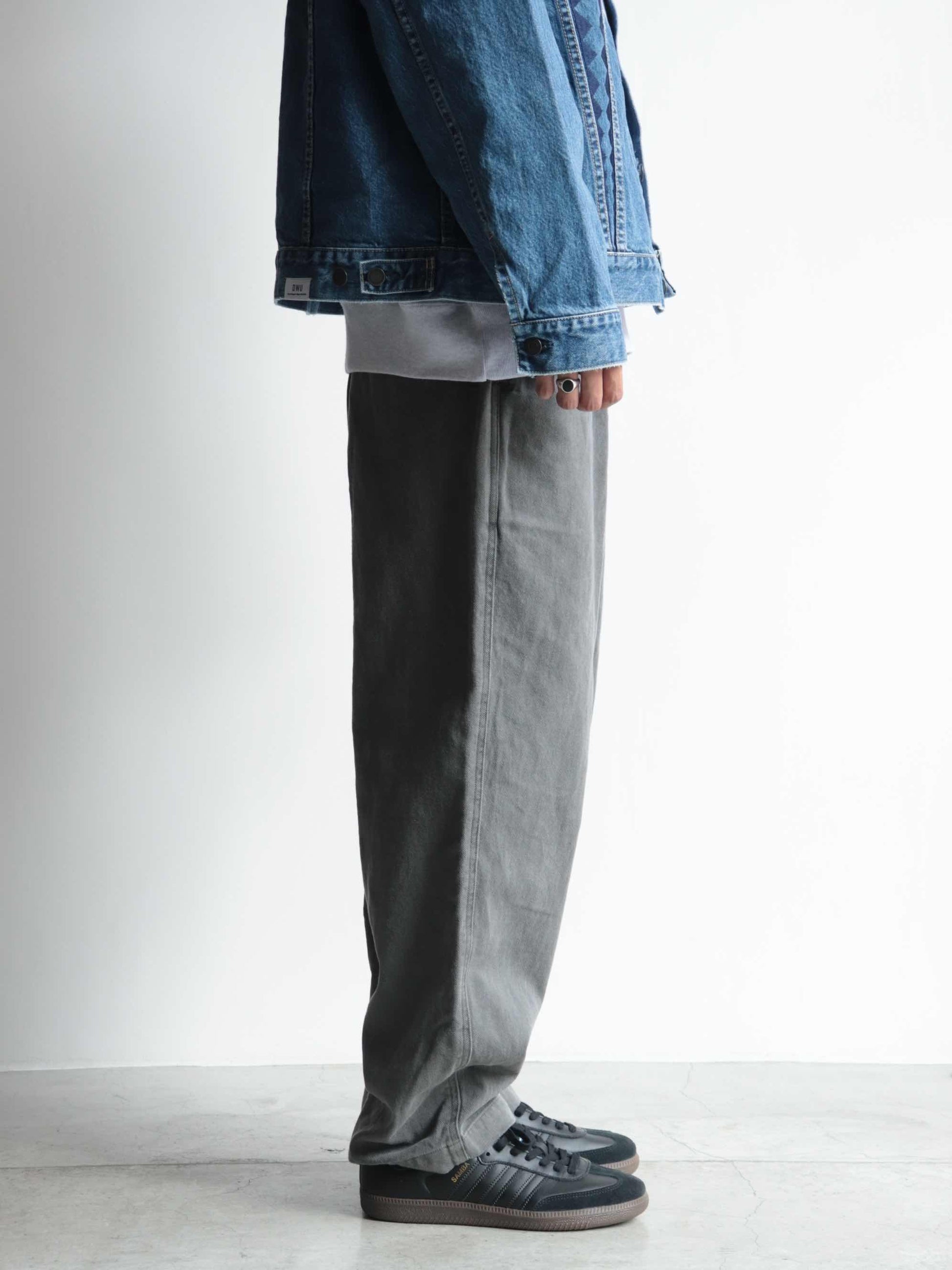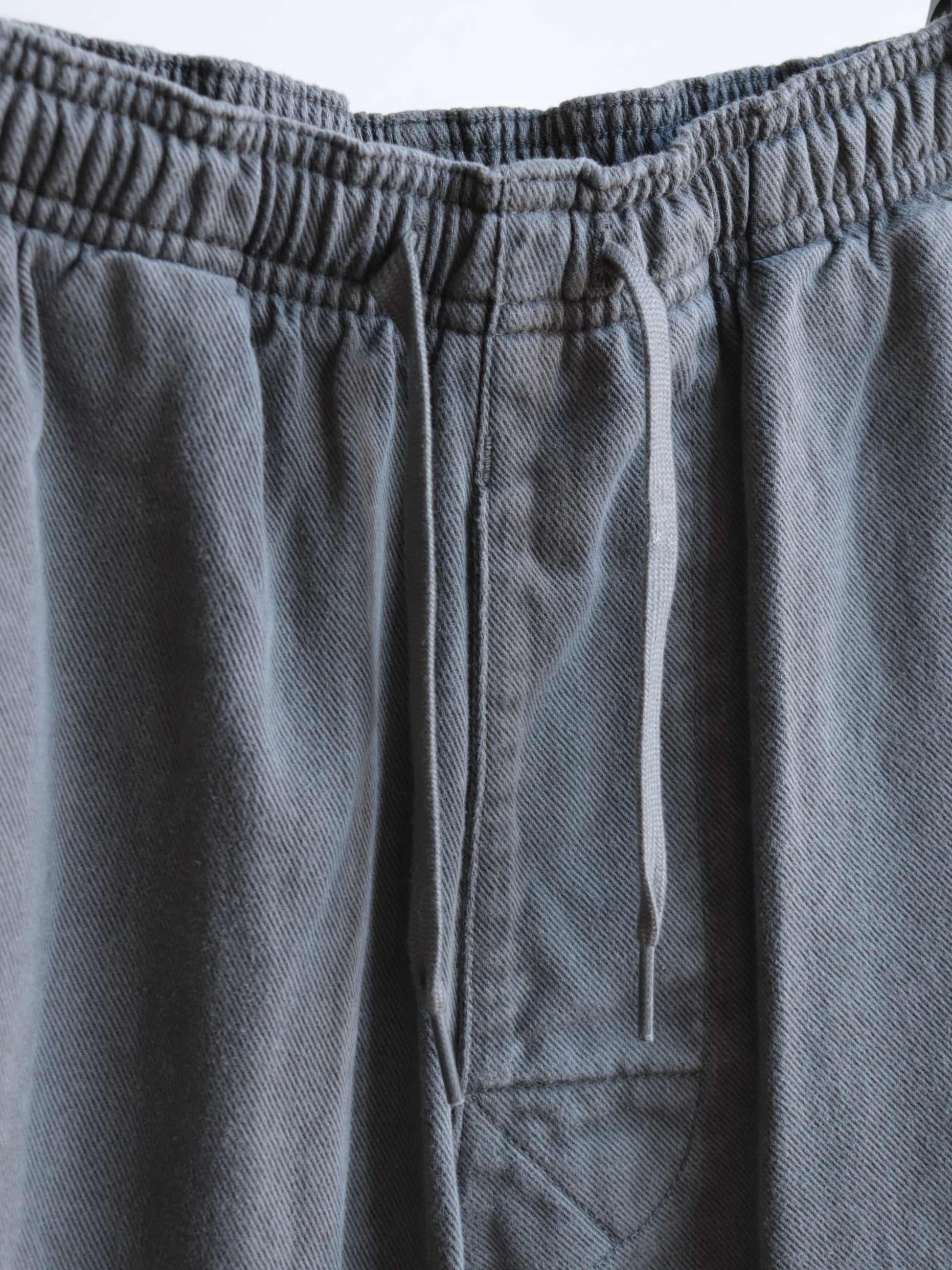 コットンツイルを使用し、ピグメントダイ加工により着古した風合いに仕上げたSHOREツイルビーチトラウザーズ。