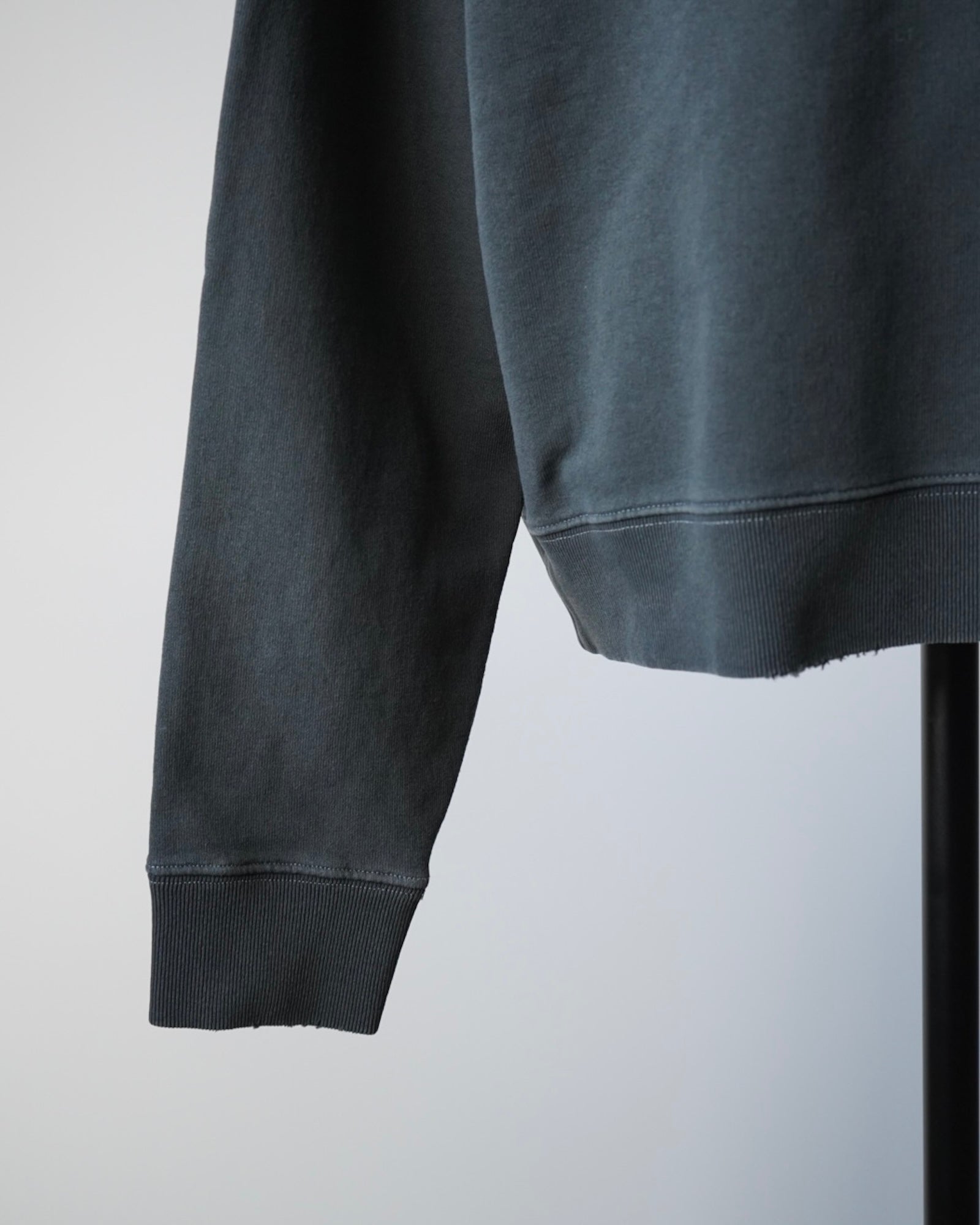 リブの縁にダメージ加工を施した、着古したようなルックスです。