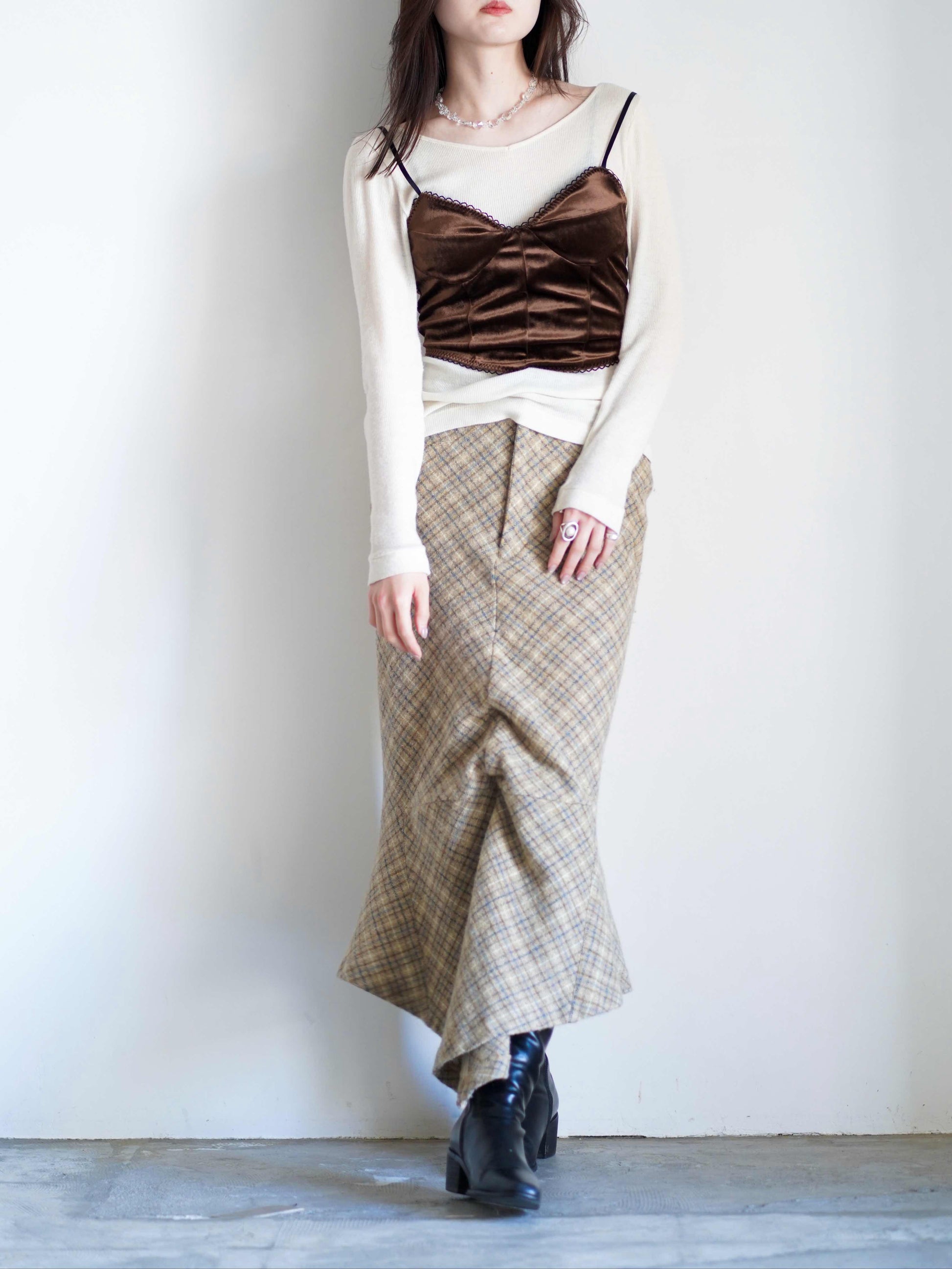 シルクのようなしなやかな風合いのベロアキャミソール。
