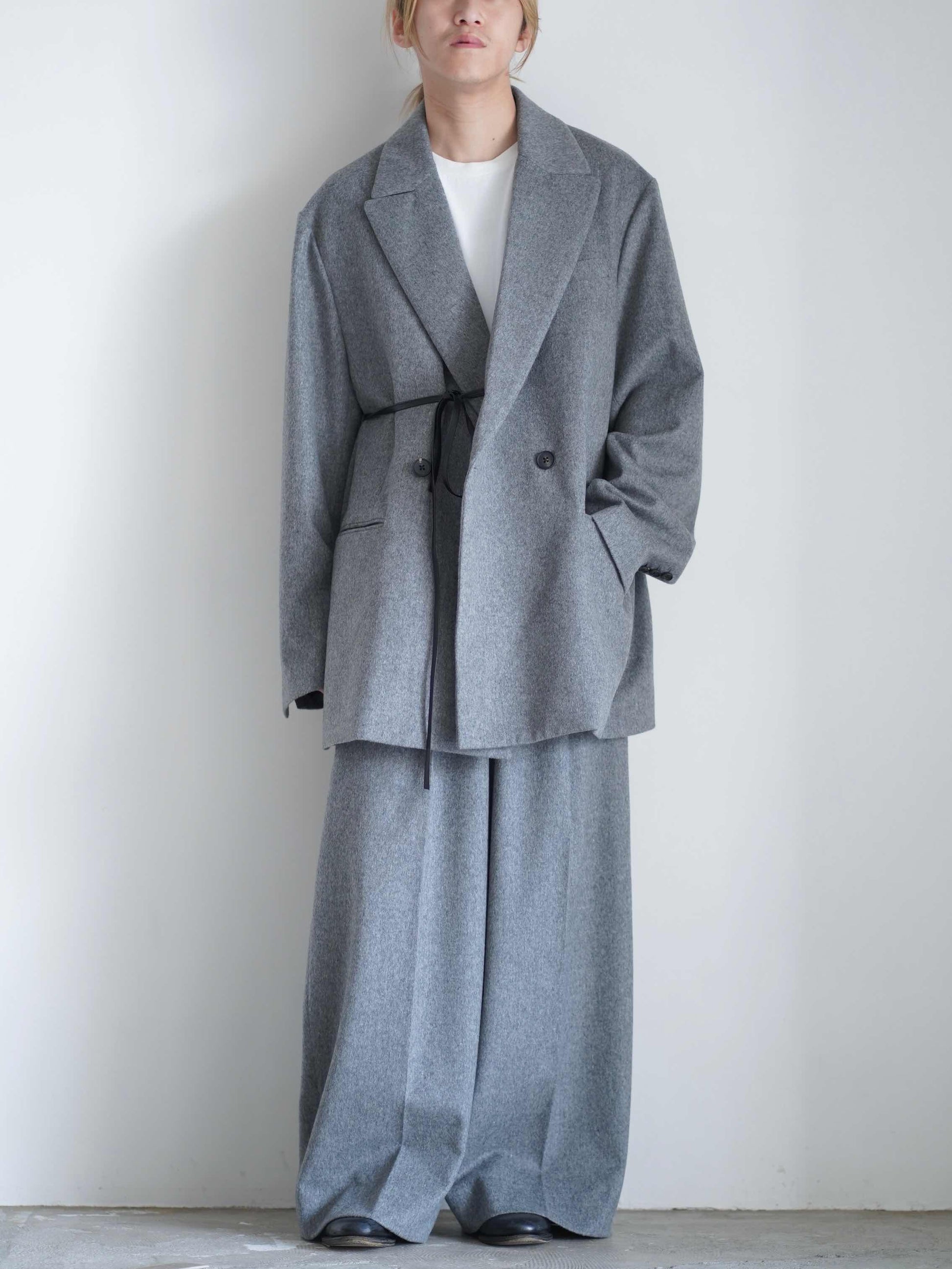 腰回りはすっきりとしたフィット感になるよう調整し、ワイドなシルエットながら上品な、エレガントなバランスに仕上がっている。