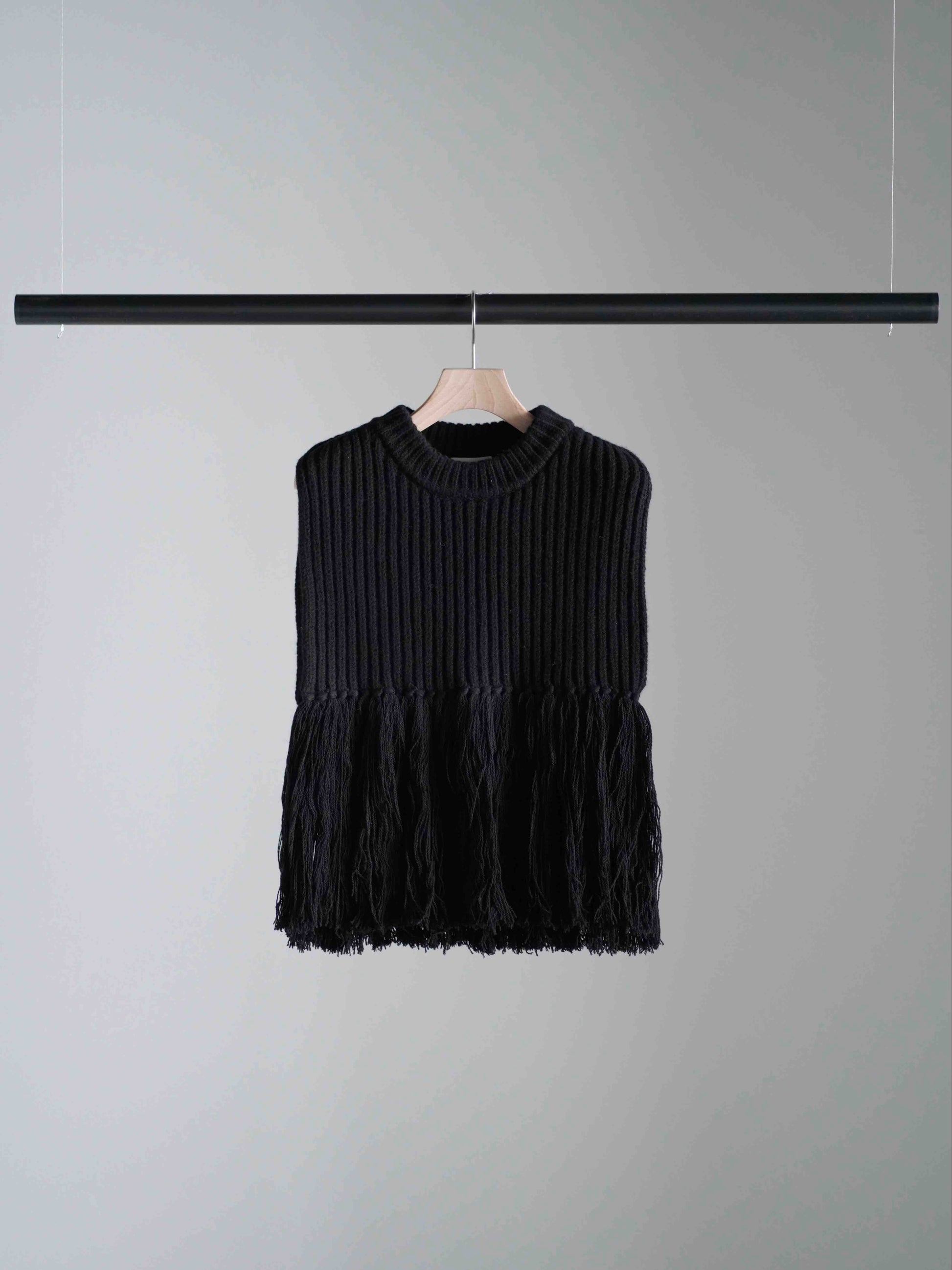 WOOL RIBBED SWEATER TOP WITH FRINGE